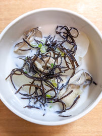 実はひじきの旬は冬。冬は体が冷えることで腸の働きが悪くなりやすくなります。そんなときこそ食物繊維が豊富に含まれたひじき。温かいメニューに海藻トッピングは栄養的にもオススメです。寒い冬に磯で収穫していることに思いを馳せながらお召し上がりください。